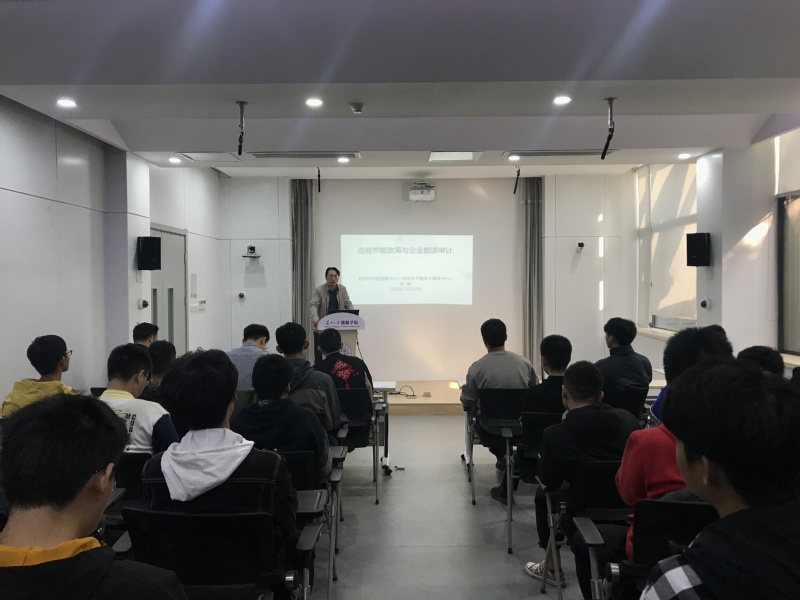 首先,吴玺老师对郭主任的来访表示热烈欢迎,并简要介绍了郭主任的情况,并强调了本次讲座对能动专业的社会价值、发展趋势和学生的职业规划都有重要启发,帮助同学们理论结合实际。郭峰,从事节能技术服务和节能监察工作8年,参与了节能量审定、能源审计、电力需求侧项目第三方审核、“能效之星”创建、节能评审等节能技术服务工作,编写报告数十份;参与了纯碱和印制电路板江苏省能耗限额标准的编制;对重点用能单位开展节能监察,并多次参加工信部和江苏省组织的节能专项监察异地检查工作。
